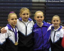 The 2002 WOGA Classic is one of the premier club Invitationals in the World. This year, competitors from the Ukraine, Uzbekistan, Kazakstan, Australia, Mexico, and Canada came to Allen, TX to compete against the home club's talent. Canada was represented in part by Omega Gymnastics' Katia Lashina, Amelia Cline, and Gael Mackie.