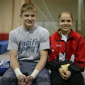 Canada's pair of 2000 Olympians and World Cup medallists found themselves in fifth and sixth after today's competition. For Kyle Shewfelt, the day was highlighted by a 9.750 (from a 9.9 start value) on vault and a 9.400 on floor exercise, his two best events, but he was undone by a 7.450 on rings. For Alexander Jeltkov, good results on high bar (9.000, 1st) and vault (9.250, 5th) were not enough to overcome weak performances on rings (8.400) and parallel bars (7.650) for the former Canadian champion.