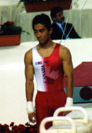 Defending national champion Richard Ikeda, 27, stands third after day one, just 0.075 behind Kikuchi. Ikeda, who represented Canada at the 1996 Olympics, took the top scores of the day on rings (9.500) and parallel bars (9.200), but had to count a disappointing 7.600 on the floor exercise. Injury forced Ikeda's younger brother Ken to participate in only one event, the pommel horse, but he made the best of his opportunity, taking the highest score of the day on the apparatus with an impressive 9.650 score.