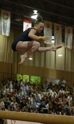 Rotation One: Purnell started the first rotation with a bang, nailing her 1 1/2 twisting Yurchenko for a 9.350 and the early lead. Teammate Banville was not as lucky, however, bailing out of her 1 1/2 twisting Yurchenko (she completed something of a Yurchenko 1 1/4, while still twisting on the landing) for an uncharacteristic 8.775. Mackie vaulted a solid full-twisting Yurchenko with a step back (8.800), while Chong hopped out of her tight handspring piked front. Hicks finished the rotation with well-landed piked Luconi (8.950).